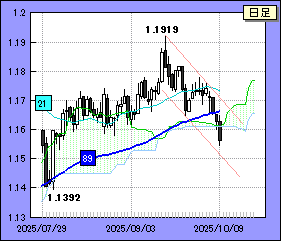 ユーロ・ドルは一昨日、長期チャンネル(9/17の記事参照)を一時的に上抜け1.1919をつけたものの、1.19台は短命に終わった。昨日は1.17台半ばまで反落。一段高に向かって弾みをつけることができなかった。