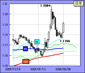 下値に関しては21日線がサポート。同移動平均線は目先、おそらく1.1800/10レベルを上昇すると予想される。破られると1.1766をトライ。これも突破されると89,200日移動平均線が狙われる。89日線は目先、1.1675付近で横ばい、200日線は1.1625/30付近をなだらかに上がってくると見られる。