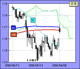 ユーロ・ドルはザラ場で89,200日移動平均線を越えたが、終値は200日線付近。両移動平均線をまだクリアに破っていない。さらに日足雲下限が同水準付近に下がってくるので1.1700近辺は強いレジスタンスになろう。しかし、1.1722が破られるとユーロ買い圧力が強まり1.18台前半への上値余地に要注意の展開となりそうだ。日足雲下限は1.1724(木)、1.1716(金)、1.1694(月)と下がってくる。