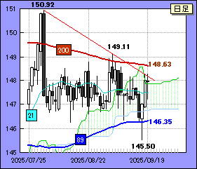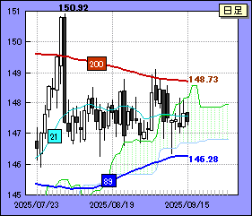 ドル・円は方向性を確定できないようだ。先週末に150.00レベルに迫ったものの、その後は急反落。一昨日、昨日と146.60レベルをつける場面があった。ただ、同水準付近には89日移動平均線と日足雲下限があってドル・円の下落を食い止めた。