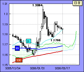 下値に関しては21日線がサポート。同移動平均線は目先、おそらく1.1800/10レベルを上昇すると予想される。破られると1.1766をトライ。これも突破されると89,200日移動平均線が狙われる。89日線は目先、1.1675付近で横ばい、200日線は1.1625/30付近をなだらかに上がってくると見られる。