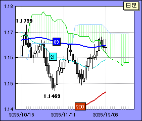 想定されるもみ合い圏は154.35/157.00ゾーン。ドル・円は11月25日以降、同ゾーン内で値動きが続いている。当面、同ゾーン内で売り買いが交錯しながら方向を模索することになろう。もみ合い圏から抜け出た場合、上値に関しては157.90が目先のターゲット。下値に関しては153.60レベル、或いは152.85レベルへの下落余地に気をつけたい。