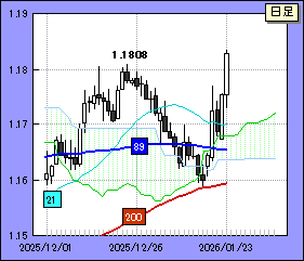ユーロ・ドルは先週末、重いと見られた1.1800レベルを越えて1.1834まで上昇する場面があった。終値は1.18台をキープ、昨年12月の高値1.1808をも抜こうという流れになりつつある。
