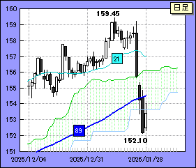 ドル・円の急落にひとまず歯止めがかかったが、89日移動平均線より下で推移している間は下値リスクに対する警戒を緩めることができない。この状況下で152.10が破られると次の狙い目は200日移動平均線だ。同移動平均線は目先、149.90/150.00レベルを上がってくると予想される。89日線は154.55/65付近を上昇すると見られる。