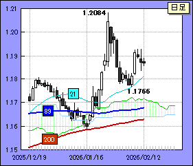 下値に関しては21日線がサポート。同移動平均線は目先、おそらく1.1800/10レベルを上昇すると予想される。破られると1.1766をトライ。これも突破されると89,200日移動平均線が狙われる。89日線は目先、1.1675付近で横ばい、200日線は1.1625/30付近をなだらかに上がってくると見られる。