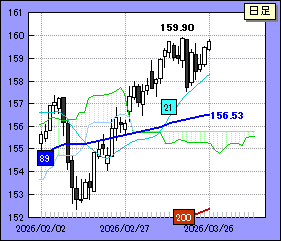 21日線は目先、おそらく157.95/158.10ゾーンを上がってくると見られる。これが破られる、正確には先週の安値157.51が破られるともう一段、下値を狙う動きが強まろう。このときのターゲットは89日移動平均線だ。同移動平均線は目先、156.45/50レベルで推移しそうだ。これも破られるようだとドル上昇の流れは一段落することになろう。